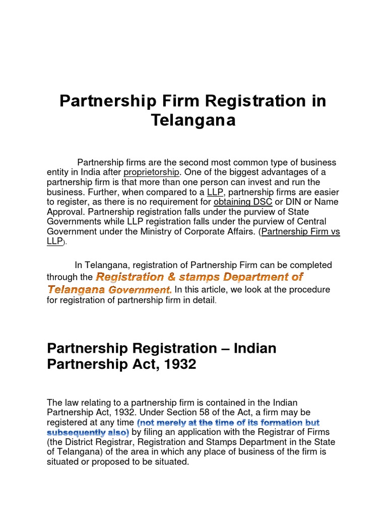 Partnership Firm Registration In Telangana Indiafilings
